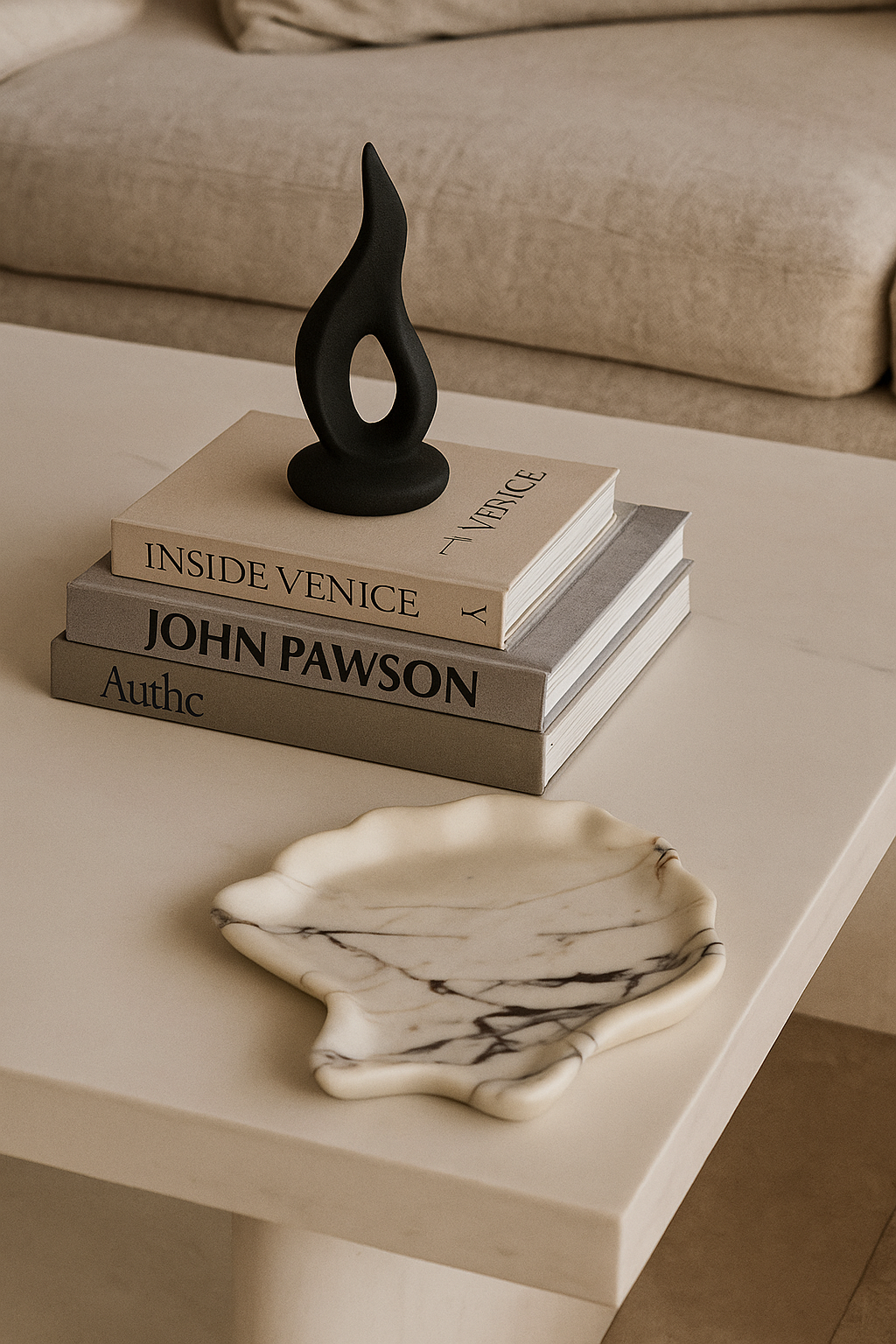Use it to elevate your nightstand, organize small essentials on a vanity, or style it on a living room coffee table with understated luxury. Each tray is completely unique due to the organic veining patterns of the stone.